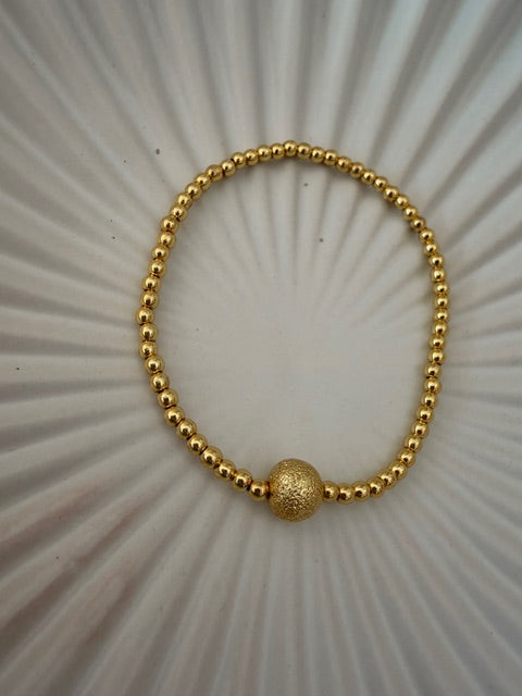 Meet your new go-to for effortless shine—this Uno textured gold stretch bracelet is designed to move with you through every part of your day. Featuring light-catching textured gold beads, it adds just the right amount of dimension and polish whether you’re dressed up or keeping it casual.